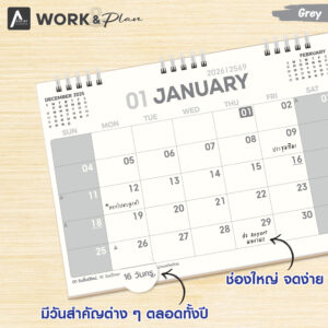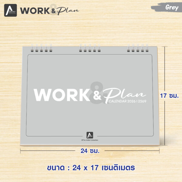 ปฏิทินตั้งโต๊ะ ปี 2569 | Work & Plan – Grey
