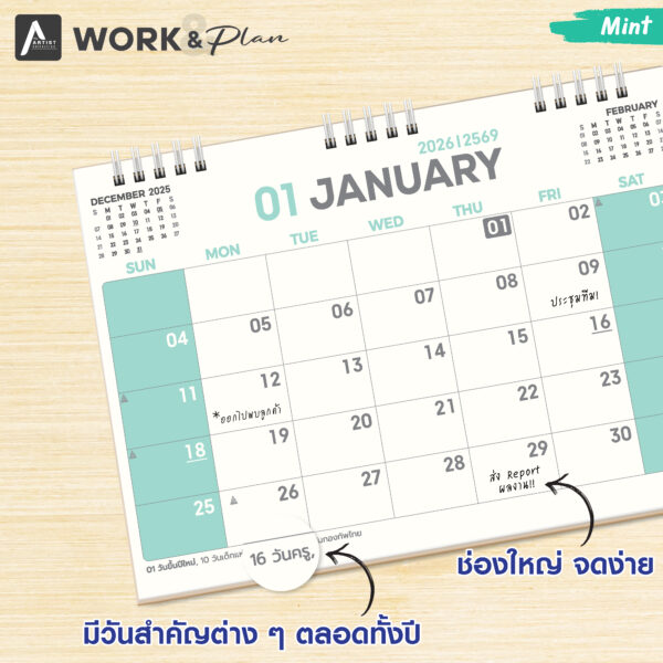 ปฏิทินตั้งโต๊ะ ปี 2569 | Work & Plan – Mint
